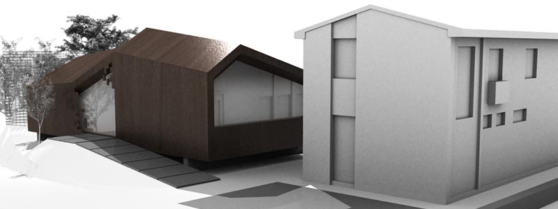 Se envolverán las fachadas con la misma teja plana que la cubierta, proporcionando un carácter singular al edificio. La fachada que se visualiza desde el camino de acceso tendrá un gran paño acristalado de U-glass como contrapunto a una pieza masiva, convirtiéndose en el elemento de referencia, foco más aún en la temporada invernal emisor de la luz artificial interior.