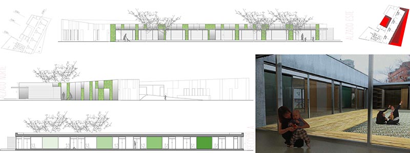 El proyecto se enfoca como una pequeña extensión de la trama urbana, no como otro elemento singular ajeno a esta, así el edificio se convierte en el elemento de unión a partir del cual dialogan las edificaciones residenciales y los equipamientos. Se estructura en forma de manzana abierta, teniendo en cuanta que esta es la organización de las manzanas anexas, toma como estas las alineaciones paralelas a las calles propuestas en el plan general y a los límites de parcela.