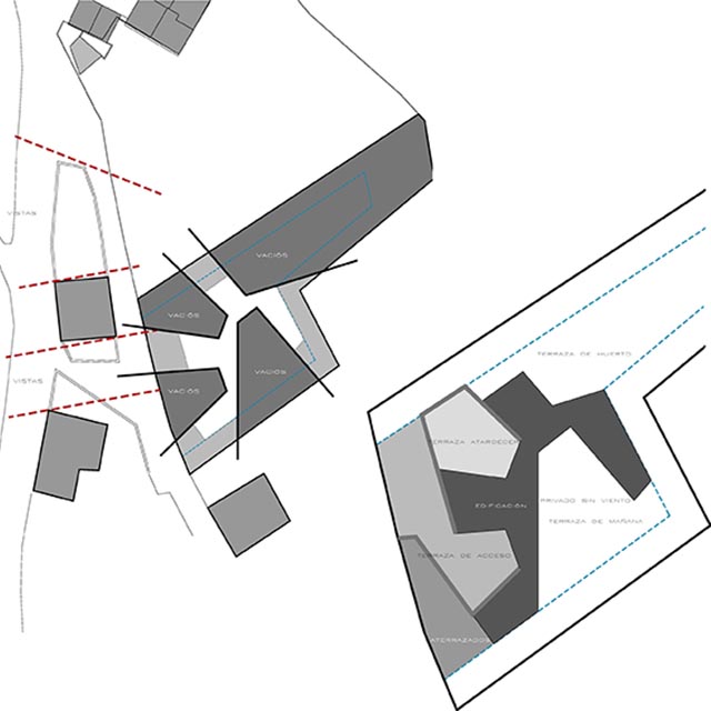 Propuesta de implantación para vivienda unifamiliar con una búsqueda de permanente relación con su entorno.