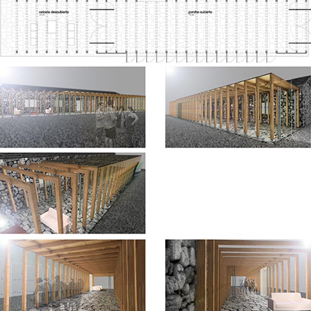 Propuesta de pérgola exterior a edificación de mampostería. Formalización contemporánea respetando lo consolidado.