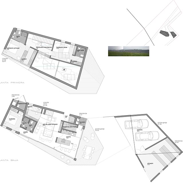 Propuesta inicial para vivienda unifamiliar en un entorno rural.