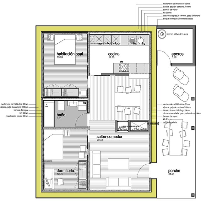 Propuesta de vivienda ecológica realizada con alpacas de paja.